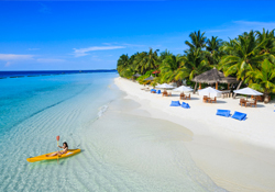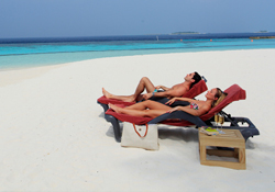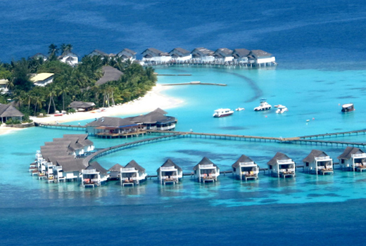 马尔地夫MALDIVES,字源于印度文MALODHEEP,是花环之意,岛群散布海面好似成串的花环。随着飞机愈接近岛群,度假的心情逐渐散开,由空中俯瞰印度洋海面,眼光闪亮,是星罗棋布的小岛群,没错,这就是期待中的马尔地夫。热带特有的海风沁在空气里,嗅得出的悠闲与自在。 真正用心寻访马尔地夫的观光客,一定不会错过从空中鸟瞰她,因为那是欣赏天际抖落而下一块块翠玉的惊奇。您见过一种风景吗?小岛的中央是青翠的绿,四周是闪亮的白,近岛的海是浅浅的透明蓝,稍远是较深的湛蓝,更远的海更蓝。在马尔地夫海水有渐层的色彩,这种旖旎美景,令人有点……不知所措。